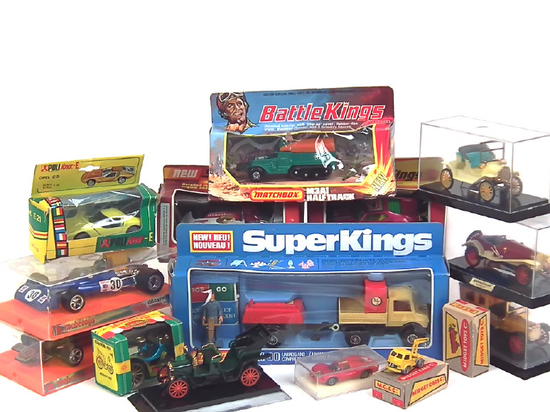 différentes échelles - on y retrouve les marques : GAMA, ELIGO, EKO, CHAMPION, POLITOYS, MIDGET TOYS (cabine dérivetée), FALLER, MEBETOYS & MATCHBOX - quelques modèles en état 'B' - petits manques