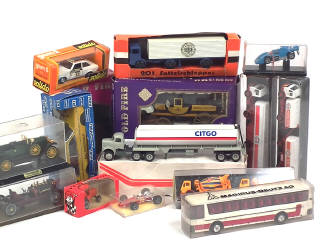 différentes échelles - on y retrouve les marques : SOLIDO, KIBRI, WINROSS, EKO, BRUMM, UKI, FALLER, POLISTIL, GAMA, NZG, ZISS MODELL, CHAMPION & MERCURY - quelques modèles en état 'B' - petits manques