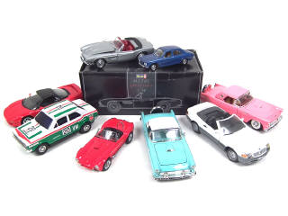 différentes échelles - comprend : BMW 507 (avec boîte en état 'c'), FORD THUNDERBIRD (2 exemplaires différents), HONDA NSX, MERCEDES 500 SL, PEUGEOT 504, SHELBY COBRA & VOLKSWAGEN (2 exemplaires différents dont une en tôle avec moteur à piles non testé) - on y retrouve notamment les marques : REVELL, POLISTIL, ROADTOUGH & ASAHI - petits manques & parties cassées