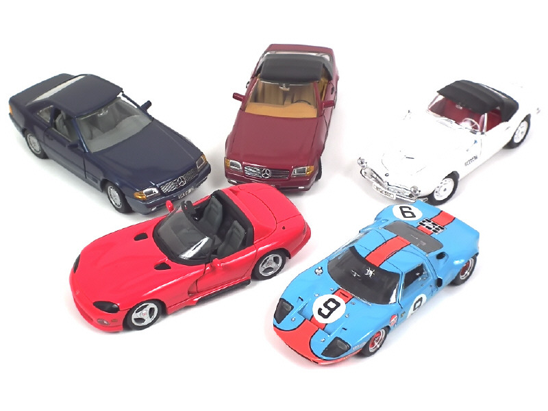 comprend : BMW 507, CHRYSLER VIPER, FORD GT40, MERCEDES 500 SL (2 exemplaires différents) - petits manques & parties cassées
