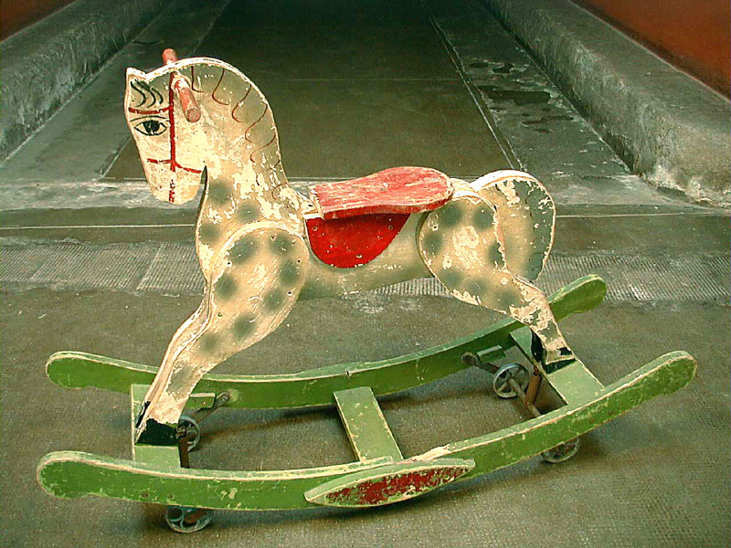 longueur 80 cm - en bois - le système de roulettes s'escamote pour mettre le cheval en position de bascule