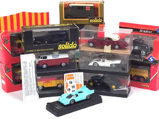 miniatures reproduisant les modèles : CITROEN, RENAULT, DODGE, GMC, FORD, PORCHE, TALBOT, CHEVROLET, VOLKSWAGEN & MERCEDES - on y retrouve les marques : SOLIDO & VEREM