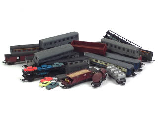 états de 'A' à 'R' - comprend : différents wagons & voitures de voyageurs - un exemplaire de la marque LILIPUT - avec 10 voitures (NOREV, LIMA & JOUEF) - avec quelques parties cassées, manquantes & transformées