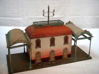 dimensions : 42 x 17 cm - en tôle peinte - avec portes & fenêtres en tôle lithographiées