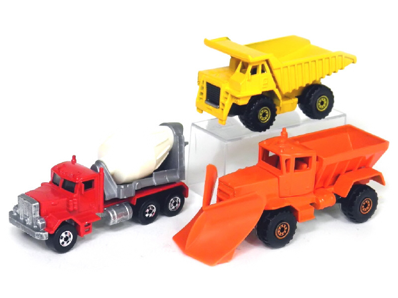 miniatures reproduisant les modèles : PETERBILT toupie à béton, CATERPILLAR dumper & OSHKOSH benne chasse neige - série HOT WHEELS