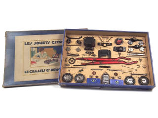 réalisation de 1929 - dimensions : 61x41 cm - avec carton de présentation & ficelles d'origine - quelques traces d'oxydation plus ou moins importantes sur certains éléments - petite décoloration sur le coffret par endroits