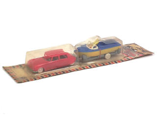 JEAN (ALLEMAGNE) CITROEN DS 19 avec hors-bord sur remorque rouge, jaune & bleu