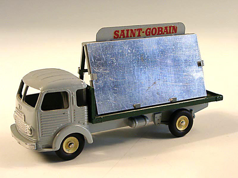 DINKY TOYS (FRANCE) 579 SIMCA CARGO Miroitier 'SAINT GOBAIN' (version avec jantes concaves) gris clair, plateau vert & jantes crème