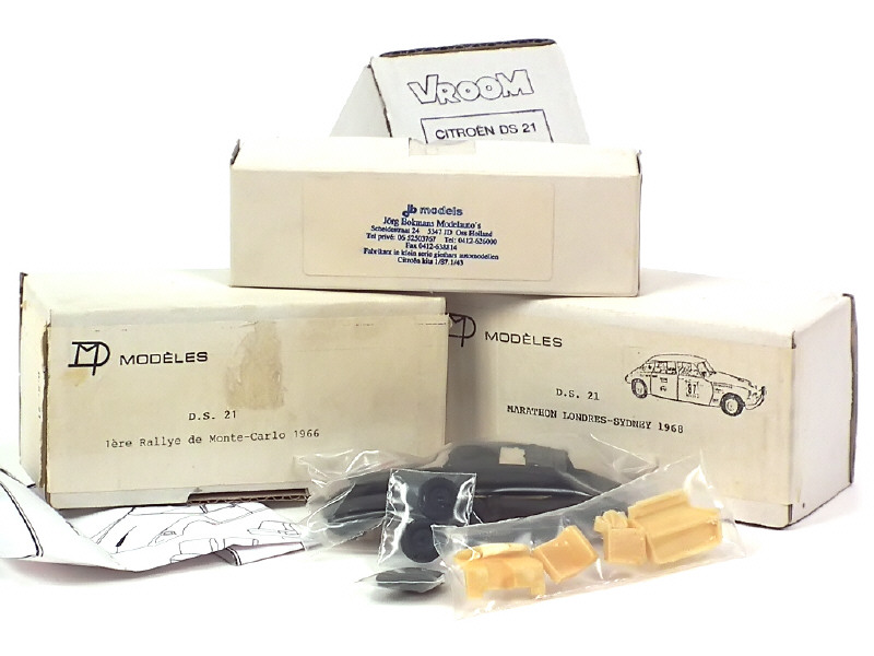 kits à monter (semblent complets) - comprend les modèles : 21 rallye (2 exemplaires différents), break ambulance & 19 PRESIDENT - on y retrouve les marques : VROOM, MD MODELES & JB MODELS