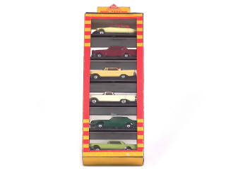 échelle 1/86ème - contient : CITROËN DS 19, MERCEDES 220, STUDEBAKER AVANTI, CHEVROLET EL CAMINO, LINCOLN CONTINENTAL & DE SOTO DIPLOMAT - chaque modèle est en boîte-vitrine individuelle - le suremballage est en état 'c'
