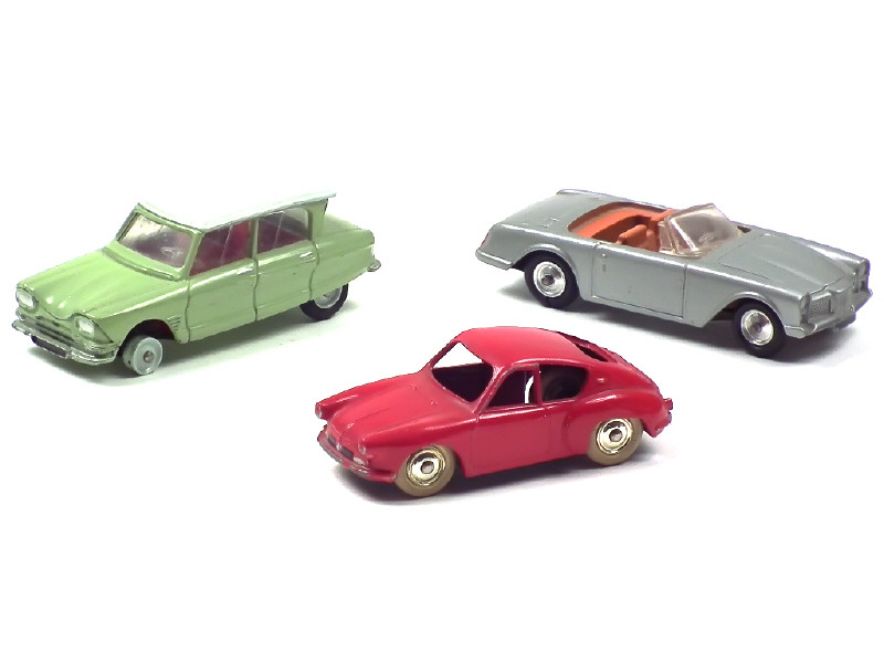 comprend : CITROEN AMI 6 (traces de peinture sur le côté droit de la carrosserie), FACELL VEGA FACELLIA (pare-brise incomplet & désolidarisé) & ALPINE MILLE MILLES (état 'D') - avec manques