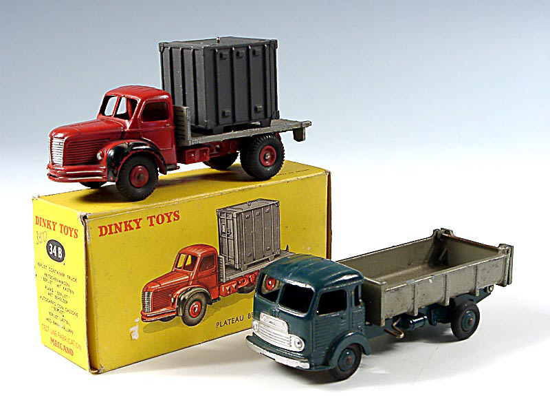 DINKY TOYS (FRANCE) 34B BERLIET Plateau avec container (version avec goupille) rouge, plateau gris clair