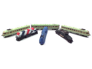 non testé - états de 'A' à 'R' - comprend : une motrice électrique, 3 motrices Diesel, locomotive à vapeur, tender & un wagon de voyageurs de 1ère classe - on y retrouve les marques : ROCO, LIMA & MÄRKLIN