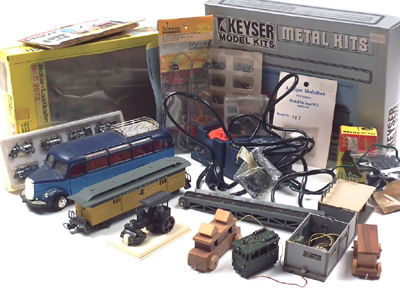 états de 'A' à 'C' - comprend notamment : des accessoires de voies, transformateur, wagons & motrices (non testée dont une en coffret à monter) - on y retrouve notamment les marques : SCHNEIDER, KEISER, EGGER BAHN, LIMA & RIVAROSSI - on y joint un MERCEDES 3500 autocar de la marque NZG - avec manques & parties cassées