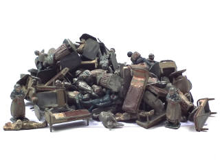 réalisés en majorité en aluminium - comprend principalement des soldats & quelques éléments de décor - avec manques