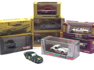 comprend : FERRARI (4 exemplaires différents), ALFA ROMEO (2 exemplaires différents), AC COBRA & JAGUAR (2 exemplaires différents) - on y retrouve les marques : IDEA 3, PROGETTO K, DETAILCAR & ONYX - 4 boîtes en état 'b'