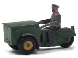 DINKY TOYS (FRANCE) 14A Triporteur (dernière version avec roues à pneus 'M') vert, jantes jaunes & pilote à chemise grise