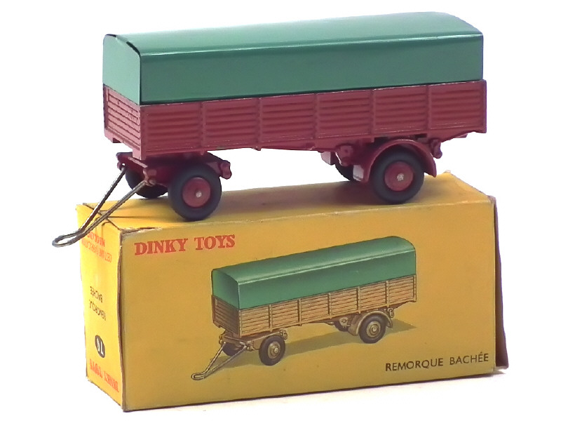 DINKY TOYS (FRANCE) 70 Remorque bâchée (version avec jantes convexes) rouge, bâche verte