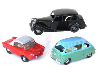 miniatures reproduisant les modèles : FIAT 600 MULTIPLA, TRIUMPH & FRISKYSPORT - on y retrouve les marques : MERCURY, DINKY-TOYS GB & SPOT-ON - quelques retouches de peinture