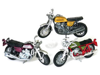miniatures reproduisant les modèles : GUZZI, HONDA 750 FOUR & SUZUKI