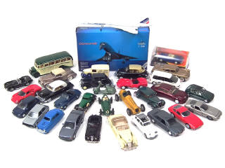 états de 'A' à 'D' - comprend notamment : AC COBRA, TUCKER, CADILLAC, BEDFORD, MGB, BUGATTI, PEUGEOT, CITROEN, VOLKSWAGEN, ROVER & FERRARI (dont un exemplaires avec traces de métal fatigue sur le plancher) - on y retrouve notamment les marques : BROOKLIN, NOREV, CORGI TOYS, CRESSEN TOY, CENTURY, SCAMOLD & REXTOYS - un modèle avec boîte (en état 'b') - avec manques & parties cassées