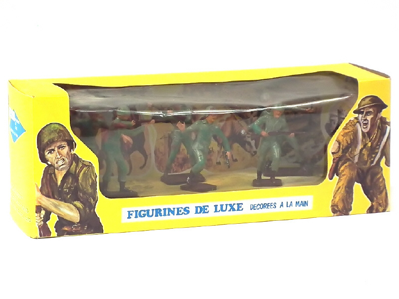 réalisation en plastique - dimensions : 26.5 x 8,5 x 10 cm - contient : 6 soldats & diorama - boîte légèrement tachée & salie