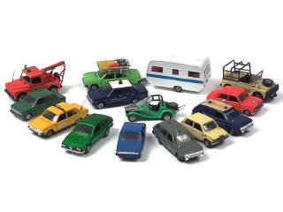 miniatures reproduisant notamment les modèles : LANCIA, FIAT (9 exemplaires différents), ALFA ROMEO, INNOCENTI & ROLLER - avec manques & retouches