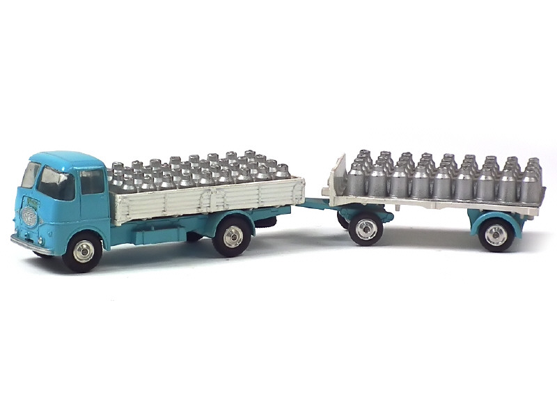 CORGI TOYS (GB) ERF plateau à ridelles avec remorque laitier bleu ciel & blanc cassé
