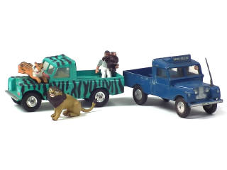 avec Dr Marsh, la guenon JUDY, le lion CLARENCE (avec ses lunettes) & un tigre - on y joint un LAND ROVER pick-up 'RADIO RESCUE' en état 'D' (avec bâche manquante)