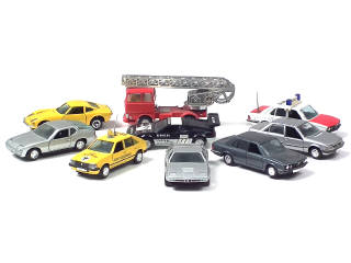 comprend : BMW 528 i (2 exemplaires différents), M1 (2 exemplaires différents), PORSCHE 924, OPEL GT 1900, KADETT, REKORD & FAUN LKW échelle de pompiers