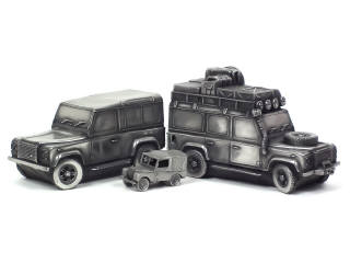COMPULSION GALLERY (GB) Ensemble de 2 LAND ROVER DEFENDER argent