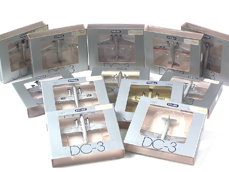 échelle 1/250ème - comprend : DOUGLAS DC3 (9 exemplaires différents) & JUNKERS JU 52 (3 exemplaires différents)