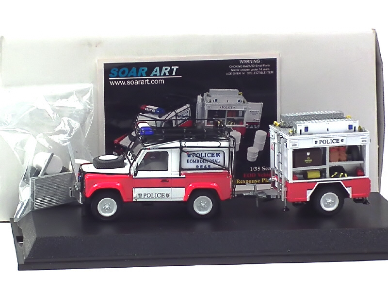 SOAR ART LAND ROVER POLICE de HONG KONG Véhicule de déminage & avec remorque blanc & rouge