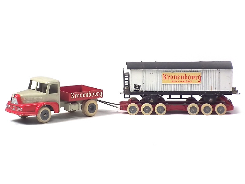 JRD (FRANCE) 123 UNIC avec remorque rail-route 'KRONENBOURG' blanc cassé & rouge