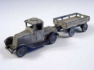 C.D. FRANCE RENAULT Tracteur avec remorque-plateau à ridelles noir & gris