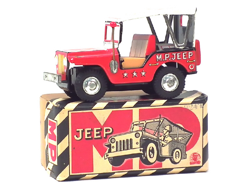 SHIOJI & CO (JAPON) M.P. JEEP en tôle lithographiée rouge & blanc