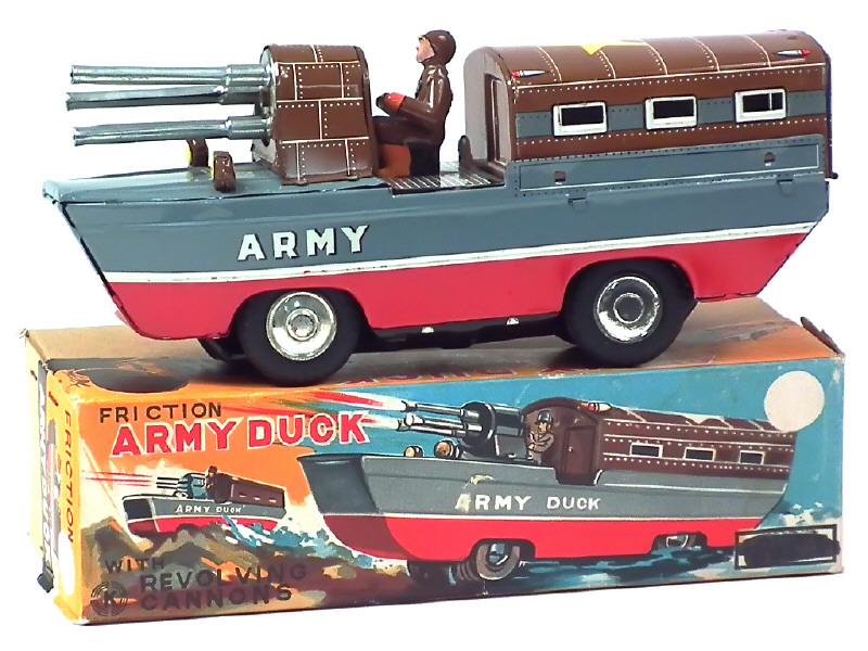 K (JAPON) ARMY DUCK en tôle lithographiée gris, rouge & marron