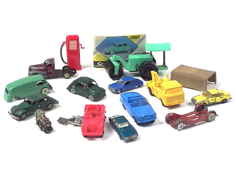 états de 'B' à 'F' - on y retrouve notamment les marques : C.I.J, DINKY TOYS, MAJORETTE, NOREV, TOMTE & SOLIDO - on y joint : 2 bâches, pompe à essence, 3 catalogues de la marque SOLIDO & un ensemble d'éléments divers