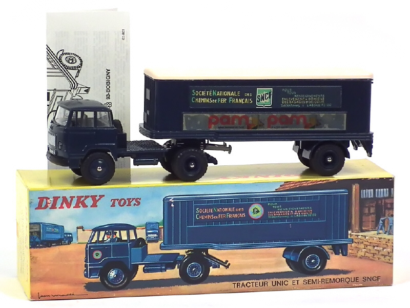 DINKY TOYS (FRANCE) 803 UNIC Semi-remorque 'S.N.C.F PAM PAM' bleu foncé, toit crème