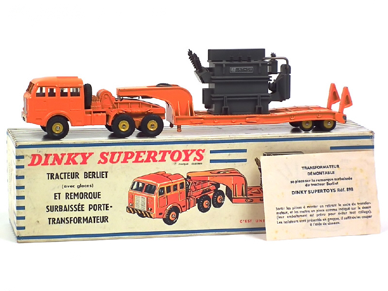 DINKY TOYS (FRANCE) 898 BERLIET Semi-remorque plateau porte-transformateur (version avec jantes de remorque convexes) orange