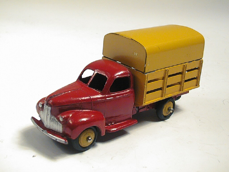 DINKY TOYS (FRANCE) 25L STUDEBAKER Tapissière (avec cabine type 1 & roues à pneus 'M') rouge, bâche & jantes jaunes
