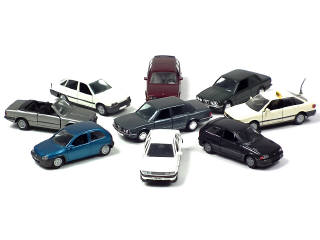 comprend : BMW 525I break, 528I, 325I, 323I, AUDI 80 'TAXI', OPEL KADETT GLS, CORSA, VECTRA & ASTRA