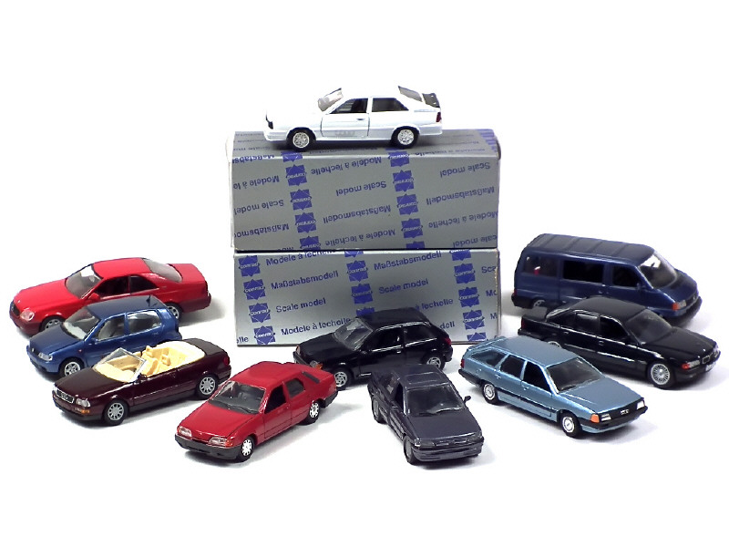 miniatures reproduisant les modèles : FORD, OPEL, AUDI, MERCEDES, VOLKSWAGEN & BMW - on y joint 2 AUDI & une VOLKSWAGEN de la marque CONRAD avec boîtes en états 'c' - quelques petits manques