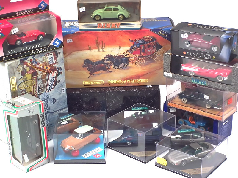 différentes échelles - on y retrouve notamment les marques : VITESSE, SOLIDO, MATCHBOX , MINICHAMPS, SCHUCO, DINKY MATCHBOX, CORGI TOYS, EDITIONS ATLAS (TINTIN) - possibilité de petits manques - quelques boîtes en état 'c'