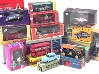 différentes échelles - on y retrouve notamment les marques : CORGI TOYS, BUDGIE, POLITOYS, SOLIDO, MINIALUXE, NOREV, MATCHBOX & GAMA - possibilité de petits manques - quelques boîtes en état 'c'