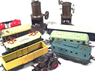 états de 'C' à 'R' - comprend notamment : motrices électriques, voitures de voyageurs, fourgons à bagages, wagons de marchandises, transformateur & moteurs - on y joint 2 machines à vapeur vive - nombreuses pièces non d'origine & modifiées - on y retrouve notamment les marques : JEP, LR, JdeP & HORNBY