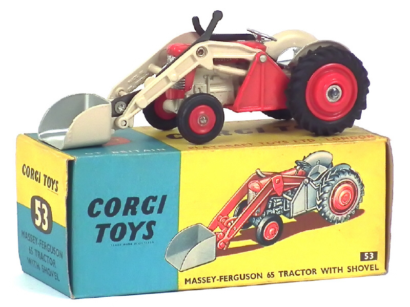 CORGI TOYS (GB) 53 MASSEY FERGUSON 65 Tracteur avec pelle chargeuse rouge & blanc cassé