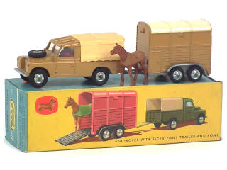 CORGI TOYS (GB) GS2 LAND ROVER avec remorque à poney marron & crème
