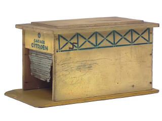 dimensions : 21,5 x 11 x 11 cm - réalisation en bois de 1933/35 - rideau métallique endommagé avec partie inférieure manquante - quelques petites fêlures, légères traces de crayon & 2 taches sur le toit