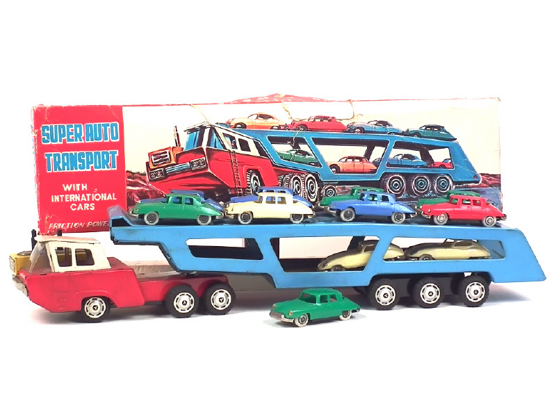 SHIOJI & CO (JAPON) S-317 Camion semi-remorque porte-autos rouge, blanc, bleu ciel & jaune